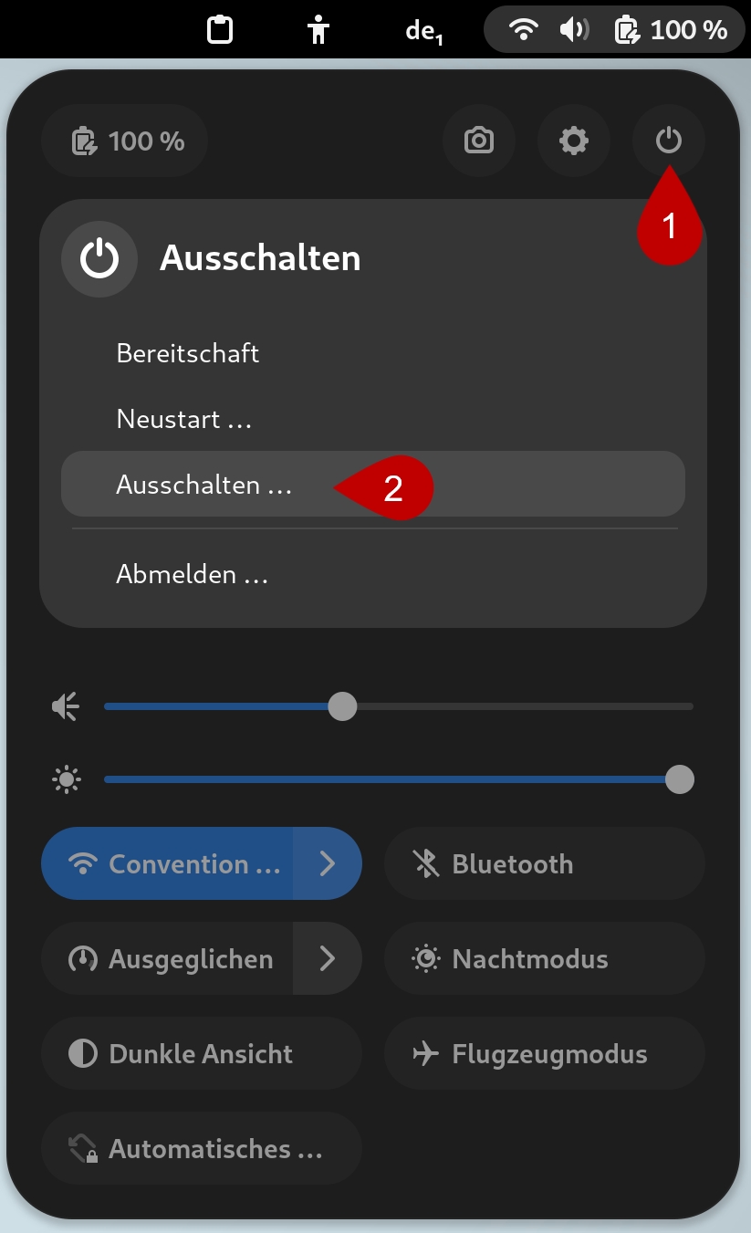 Fare clic sul "pulsante di alimentazione"(Power Button) e quindi su "Ausschalten...". A questo punto il sistema si spegnerà.
